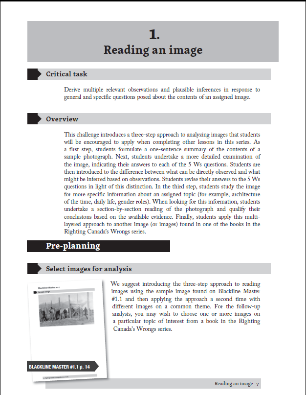 A resource guide for the Righting Canada’s Wrongs series that provides lessons in historical thinking. Covers all ten books in the series.