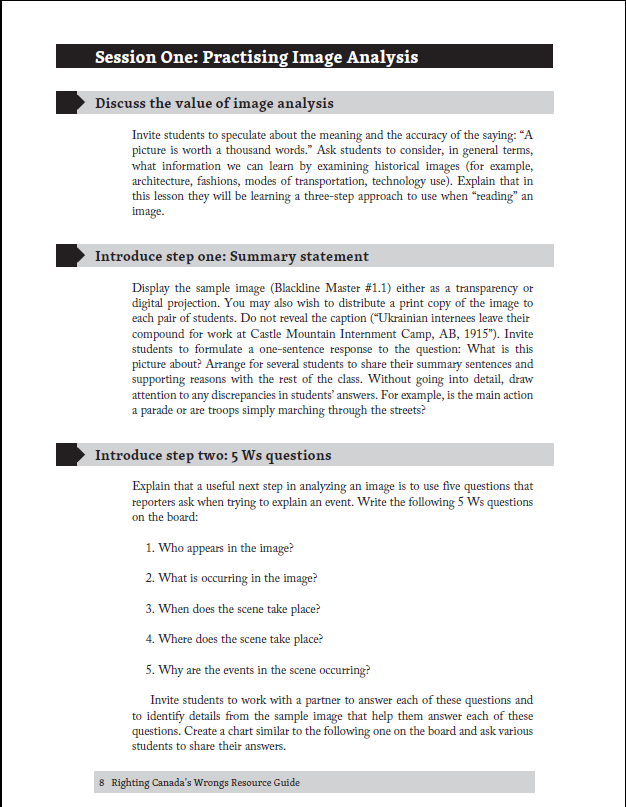 Each resource guide provides inquiry based lessons in historical thinking. The engaging and curriculum-based lessons in this Resource Guide will help students to further understand some of the important events that helped shape our multicultural society, enabling teachers to incorporate them into their lesson plans.